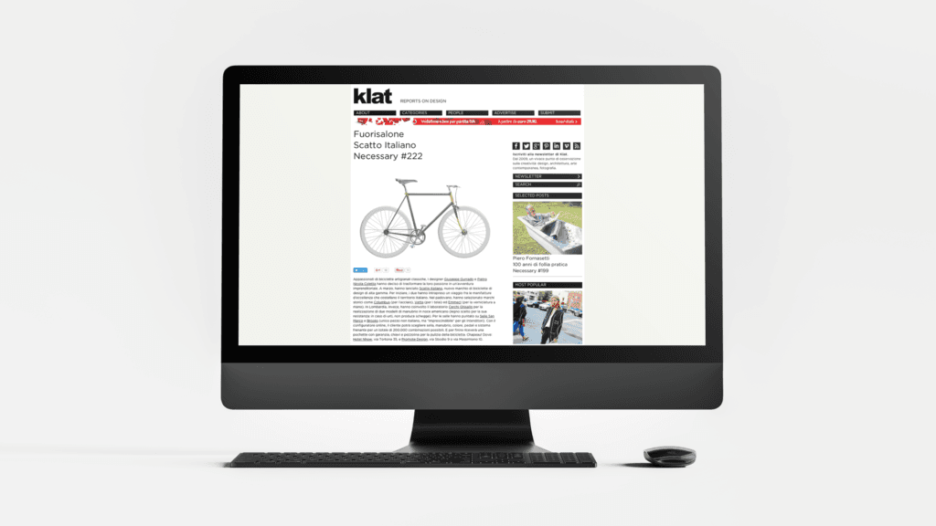 From Klat Magazine, 03.04.2014 Klat is an online magazine that deals with creativity, culture and design. Select and tell places, stories, ideas, objects and images not to be missed. Below is an extract from the article edited by Anna Lagorio: “Appassionati di biciclette artigianali classiche, i designer Giuseppe Gurrado e Pietro Nicola Coletta hanno deciso di […]